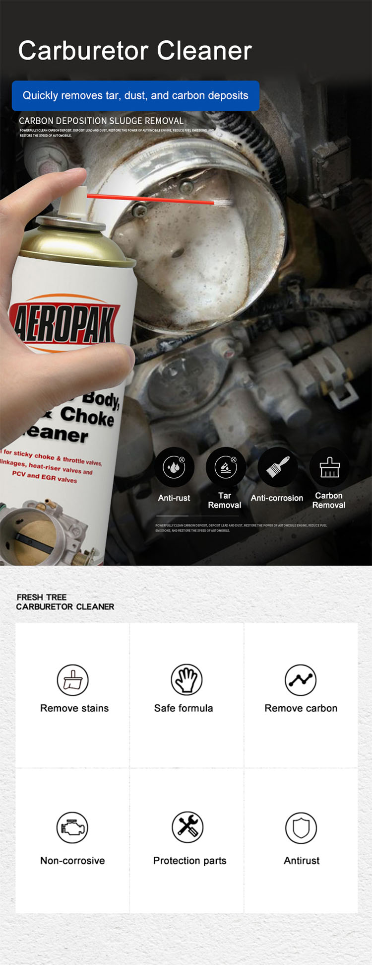 Descrição: O corpo do acelerador AEROPAK, o limpador Carby e Choke podem remover com eficácia sujeira gordurosa, goma e depósitos de carbono na válvula de PVC, válvula ERG, afogador e outras peças.O produto pode aumentar a eficiência da combustão para economizar óleo e diminuir.